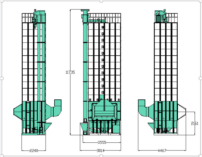 2. 強制分散裝置及多支排糧輪定量下料循環(huán),薄層大風量,谷物干燥均勻,干燥效率高。